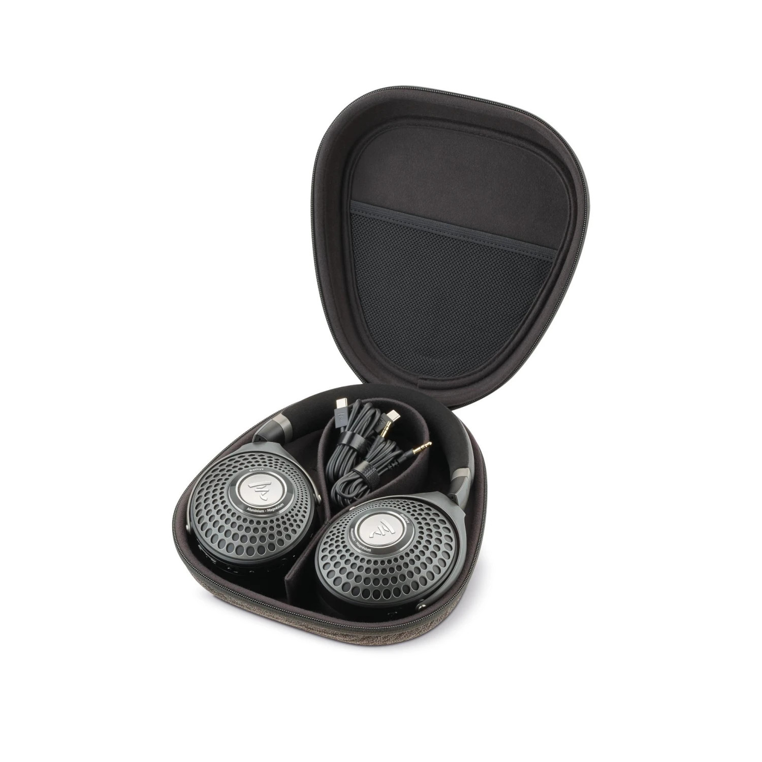 Bathys boasts a distinctive, timeless Black Silver finish and design cues intended to offer unparalleled lightness, compactness and support. These ergonomic headphones combine refined materials – such as magnesium on the yokes and leather on the headband – resulting in outstanding comfort for any head shape. The earcup grilles display highly aesthetic curves, while Focal’s flame symbol incorporates a white backlight system that can be activated as desired.