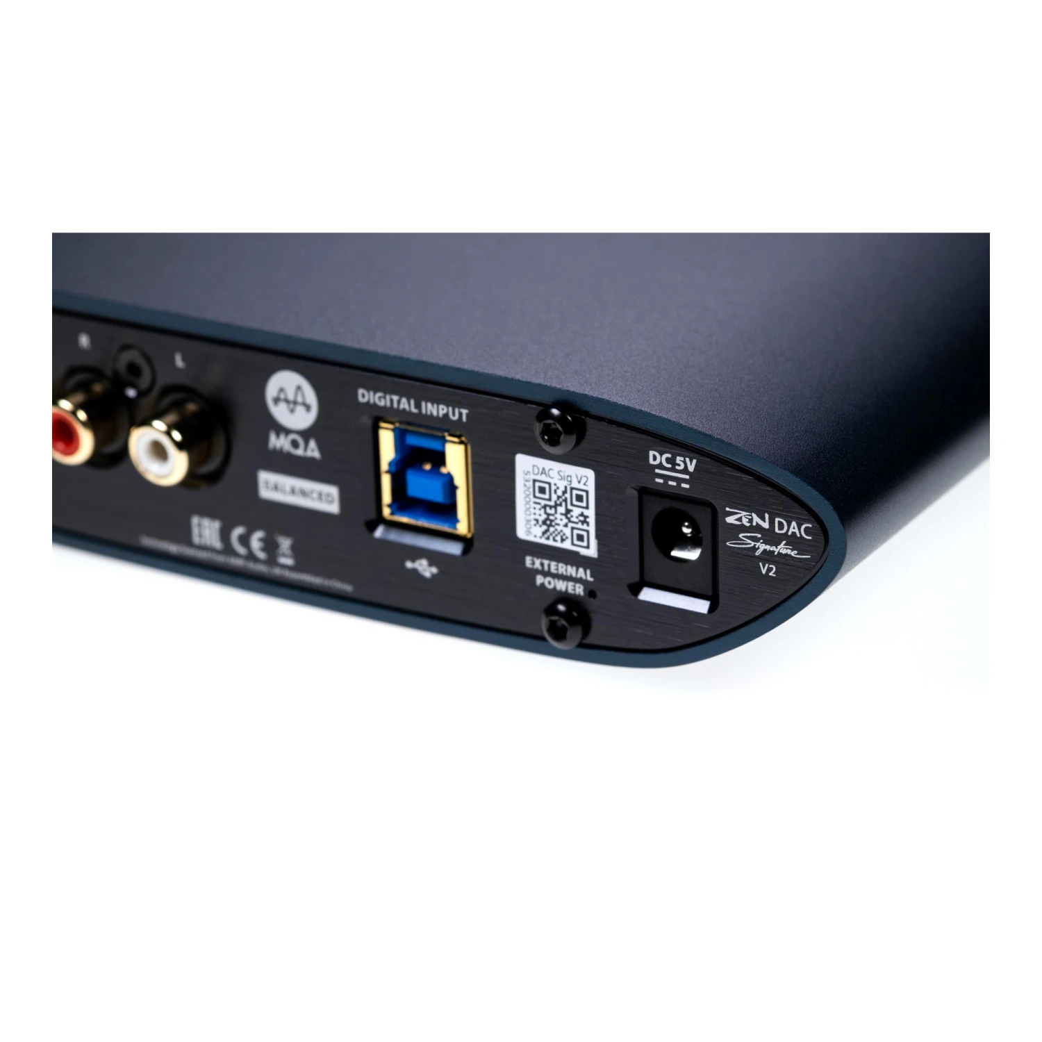 The ZEN DAC Signature V2 includes MQA technology, which enables you to play back MQA audio files and streams, delivering the sound of the original master recording. The LED glows green or blue to indicate that the unit is decoding and playing an MQA stream or file, and denotes provenance to ensure that the sound is identical to that of the source material. It glows blue to indicate it is playing an MQA Studio file, which has either been approved in the studio by the artist/producer or has been verified by the copyright owner.