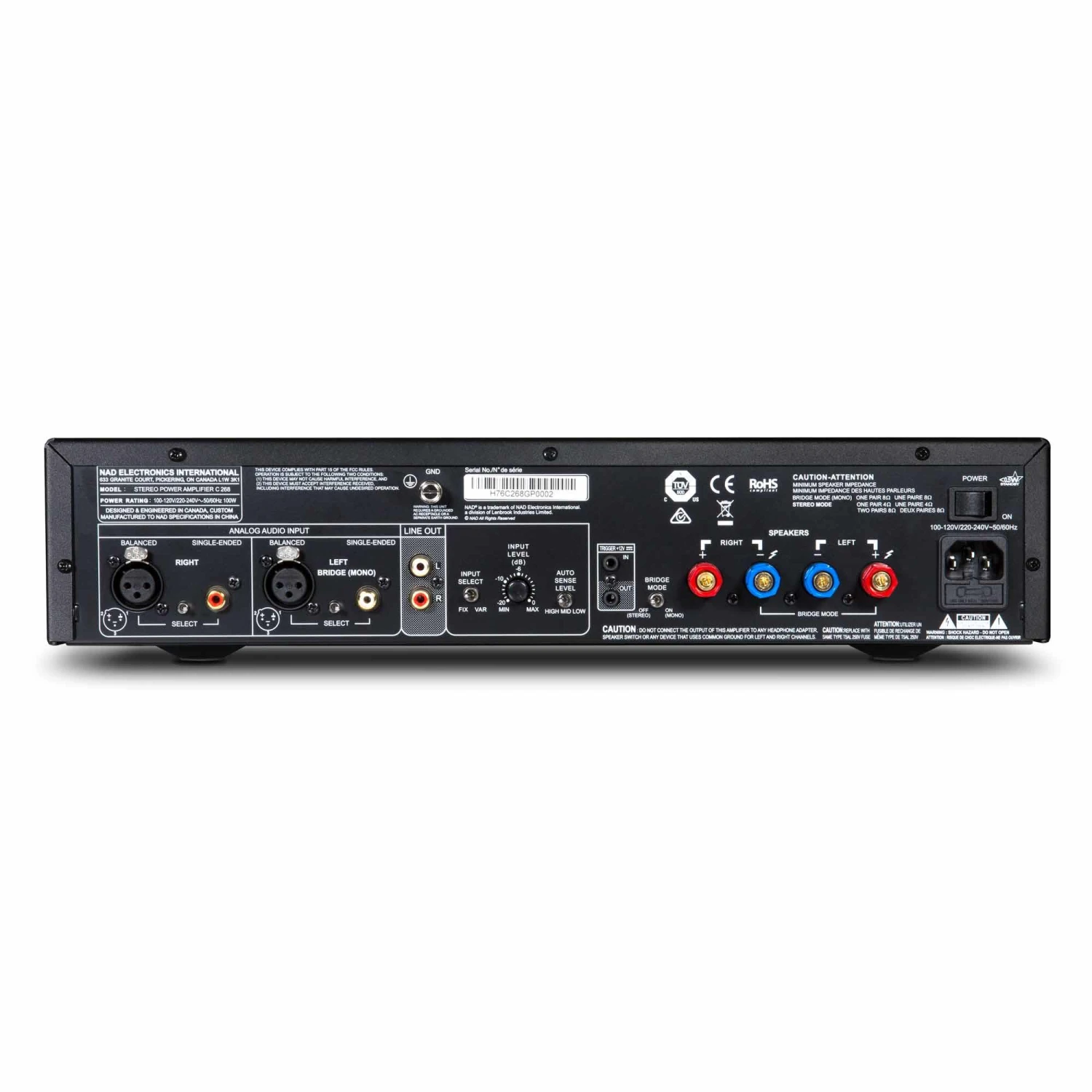The C 268 may be a basic Power Amp, but we have carefully thought through all the use cases typically encountered to create a rich feature content. Selectable balanced inputs make the C 268 a natural for connection to high end Preamps and Processors. These inputs include a trim control useful for matching to other components or for use in bi-amping Speakers. A line out allows further addition of power on the same channel for additional speakers or subwoofers. Alternatively the C 268 can be paired with our NAD C 368 Integrated DAC Amp, and with both units bridged for Mono, 300 distortion-free watts per channel are available for your listening pleasure! Auto-sense with selectable threshold is perfect for automating complex systems or hiding the amp out of sight in a cabinet. We even include a Ground Lug that can be very useful for eliminating ground loops and noise in complex multi-unit systems. Added to all this connectivity is a Bridge Switch that turns the C 268 into an amazingly powerful Monobloc Amplifier. Start with one and add a second C 268 later when you upgrade your speakers.