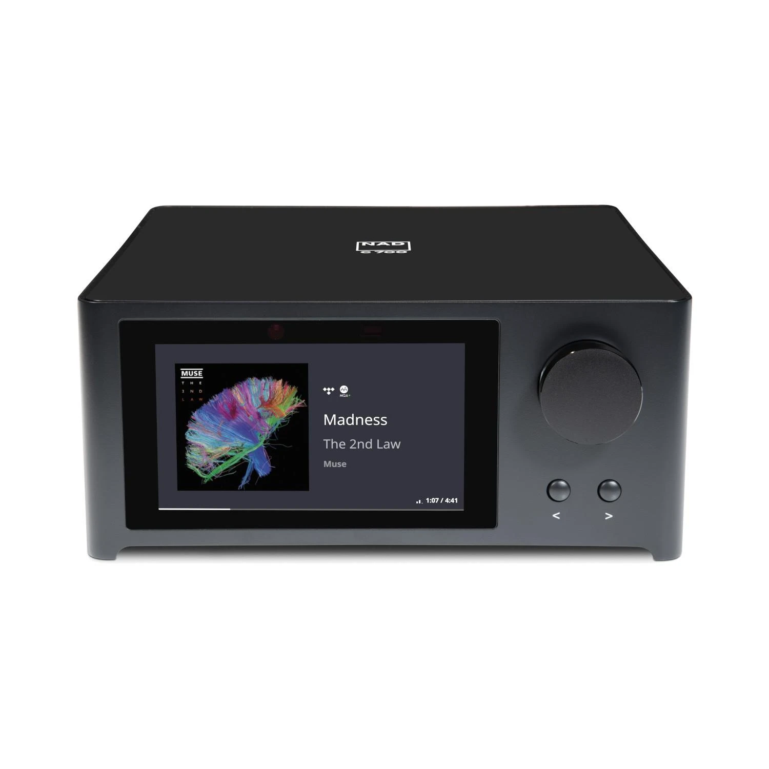 Thanks to its elegant, minimalist design and premium materials, the C 700 will engage all your senses — not just hearing, but sight and touch as well. The amplifier is housed in a solid aluminium case, with a smooth glass front panel and 5” high-definition colour display that shows album art, track progress, and system settings.