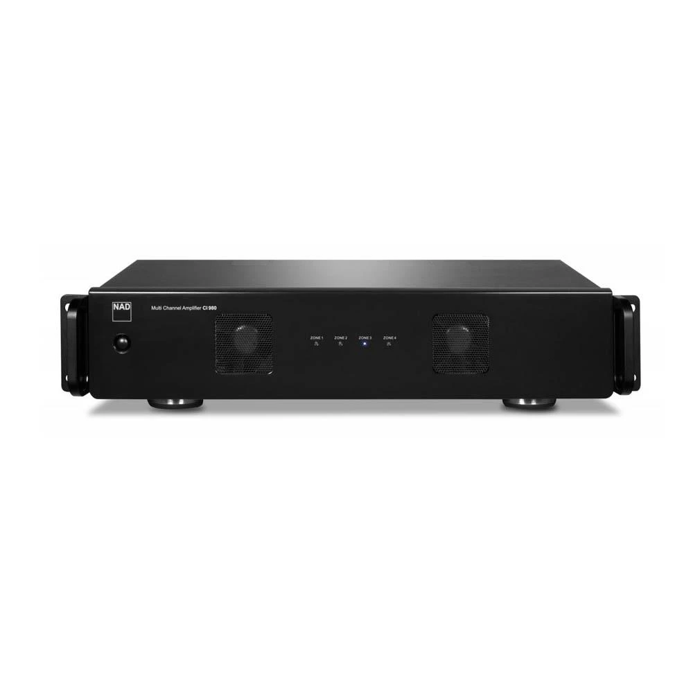 With the CI 980, NAD introduces a new generation of high performance amplification for custom installation and distributed audio systems. By utilizing the latest high efficiency switching amplifier technology, the CI 980 is and all-new design built to be small, light, and very energy efficient, without compromising the superb musical sound quality for which NAD is known. The CI 980 has 8 channels of clean, low distortion power set up in a 4 stereo zone configuration. Boasting 50 watts per channel, the CI 980 is designed to drive low impedance speakers and long wire runs.