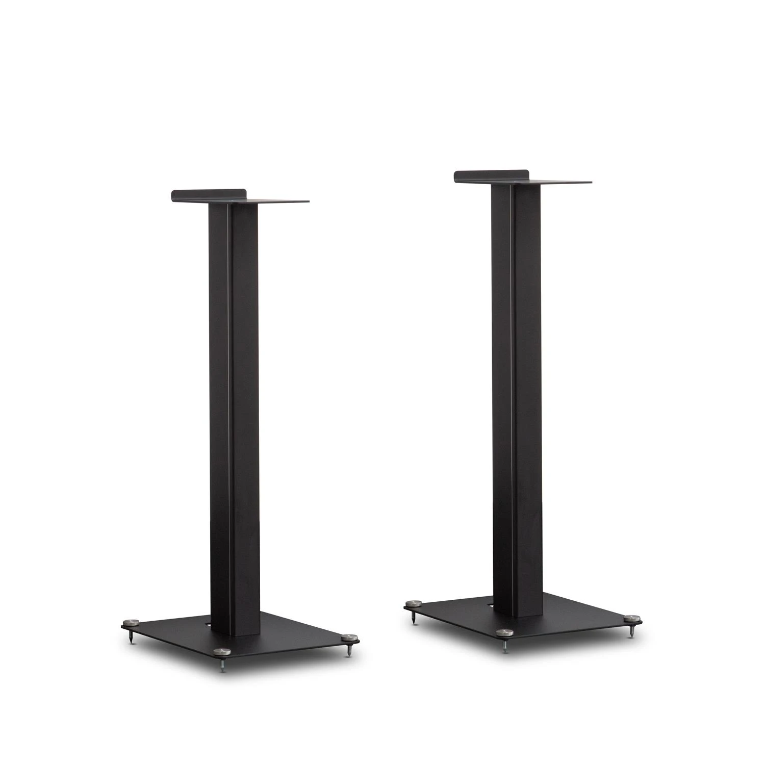 Custom made to match with the Alpha iQ Streaming Powered Speakers with BluOS, these sleek and elegant floor stands boast a sturdy gauge steel construction with an accent strip to complement the Alpha iQ speakers’ diamond trim. Sized at 25″ tall to provide the ideal height for seated listening, the weighted base plates provide a secure footing and come with adjustable floor spikes for use on carpets and floor protector discs to safeguard wood or tile floors. The stands also include concealed wire management to minimize cable clutter.