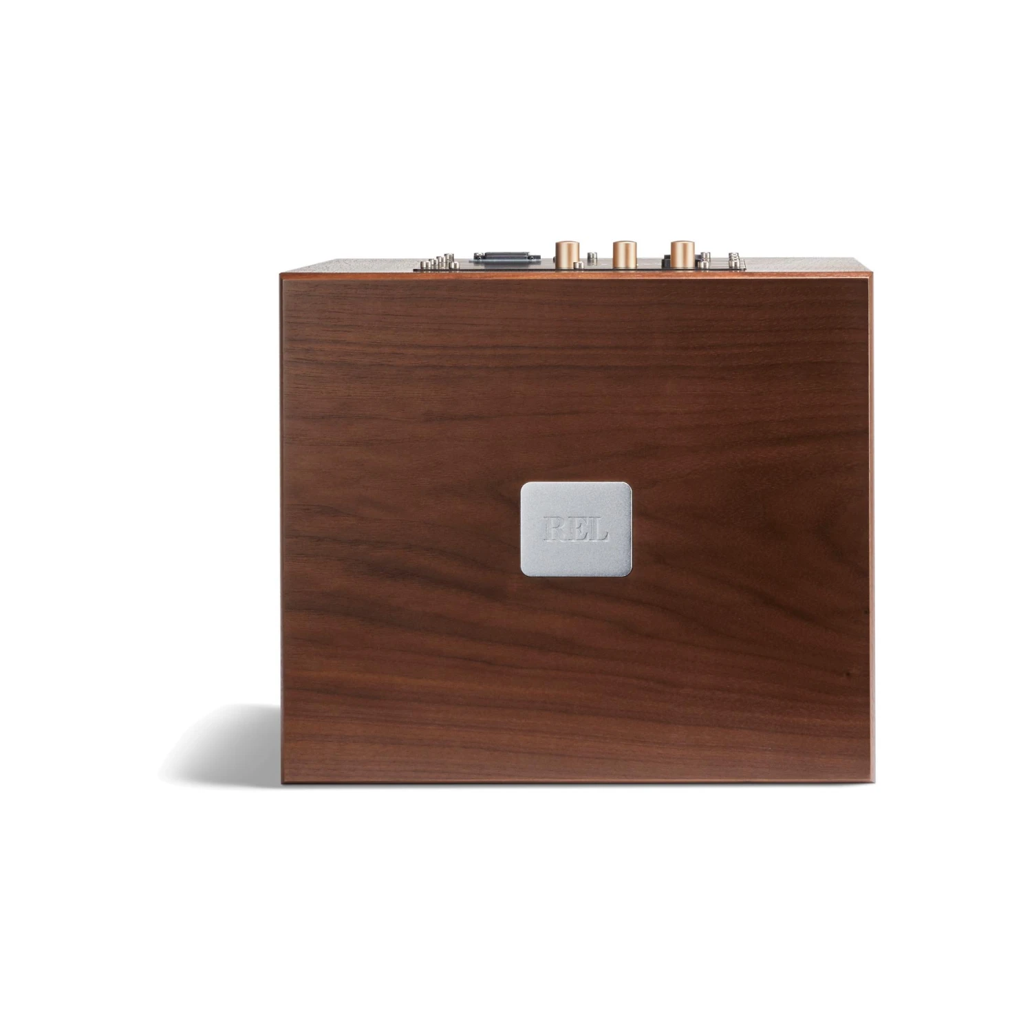 Classic 98 channels the essence of renowned 10” down-firing designs from the late 90s. The rich, natural walnut veneer exudes warmth and authenticity, reminiscent of the mid-century stereo gear. The radiused curve, accentuated by a subtle reveal line, showcases modern craftsmanship while honoring past design. The rear amp panel, with its white gold silk screening and contrasting knobs, evokes memories of the era, while the glossy black logo set against a matte background adds a contemporary touch.